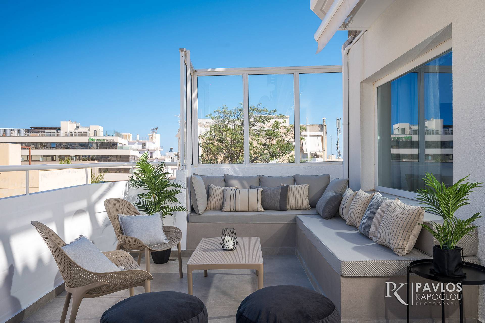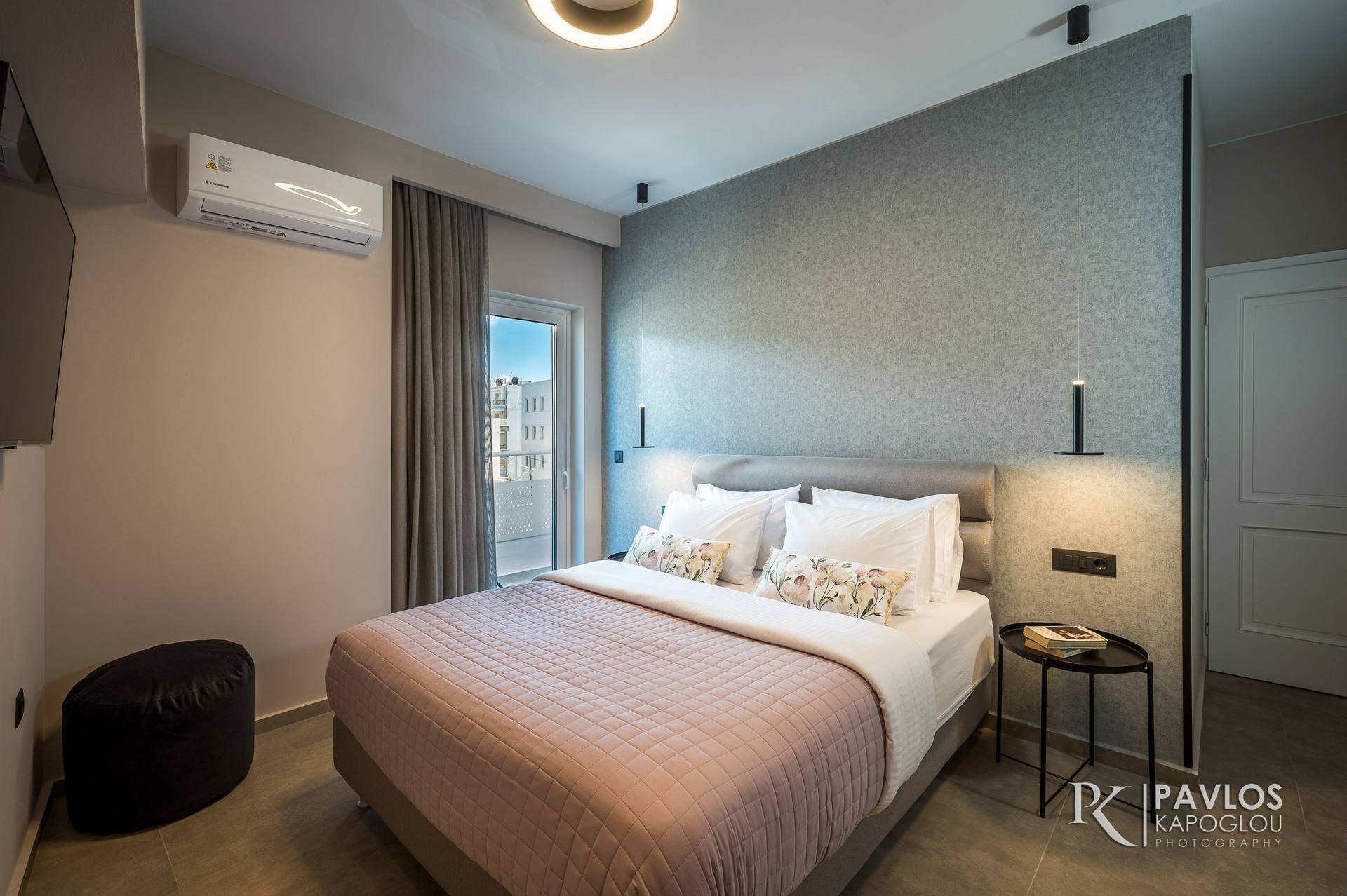 Στο διαμέρισμα υπάρχουν 3 φωτεινά και ευάερα υπνοδωμάτια και δύο μπάνια. Όλα τα υπνοδωμάτια έχουν δική τους έξυπνη τηλεόραση 43’ με δορυφορικά κανάλια και δικό τους κλιματιστικό. Τα δύο από τα τρία υπνοδωμάτια έχουν διπλό κρεβάτι και στο τρίτο υπνοδωμάτιο υπάρχει μια κουκέτα με δύο μονά κρεβάτια. Στο επάνω κρεβάτι υπάρχει προστατευτικό κάγκελο. Όλα τα κρεβάτια έχουν αναπαυτικά στρώματα με ενσωματωμένο ανώστρωμα της εταιρείας Greco Strom και προσφέρουν έναν ξεκούραστο ύπνο.
